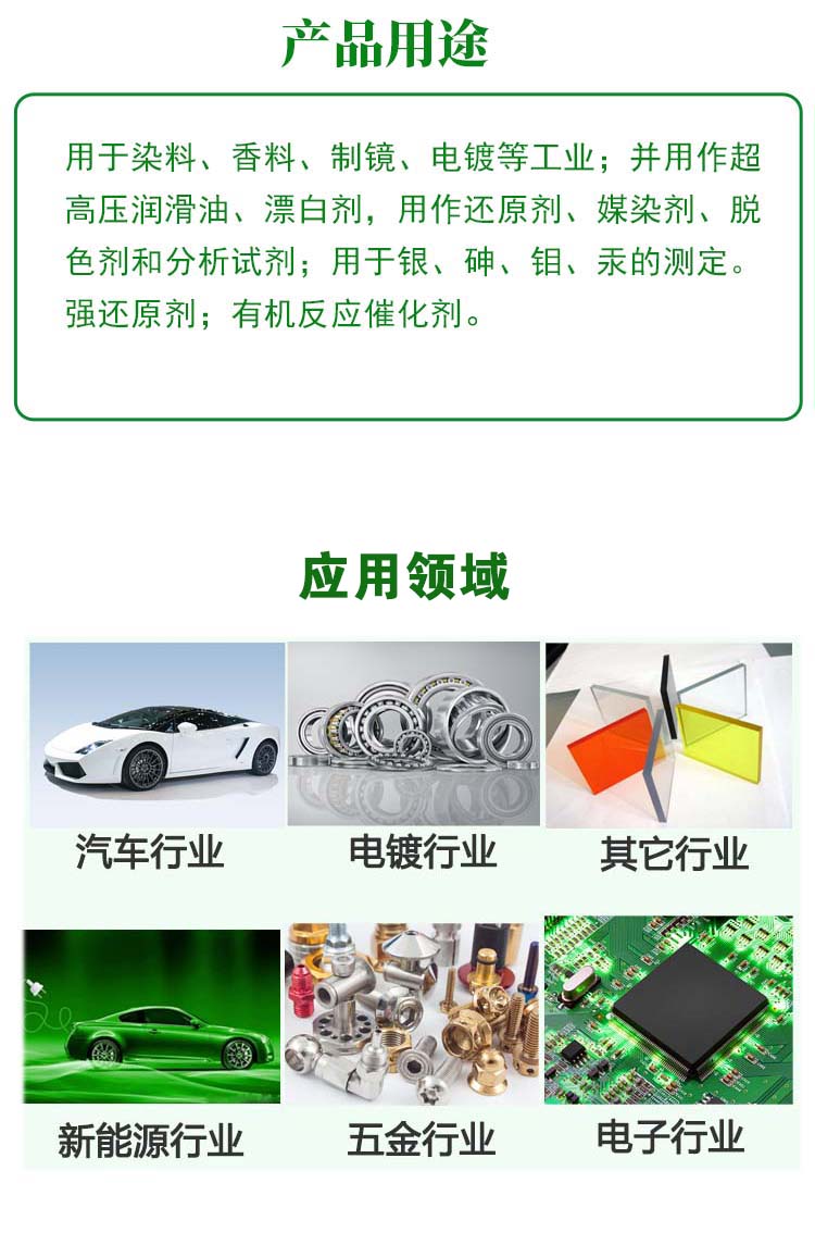 技术壁垒: 氯化亚锡的合成需在无氧、低温环境下进行,且需通过多级精馏提纯,技术门槛极高。 3.3 下游:应用领域的“百花齐放” 氯化亚锡的终端应用涵盖电子、化工、医药等多个领域。主要市场包括: 消费电子:智能手机、平板电脑、可穿戴设备,占比45%。 新能源汽车:电池模组、电机控制器,占比25%。 5G通信:基站天线、光模块,占比15%。 其他:光伏、LED、传感器等,占比15%。 案例: 宁德时代在麒麟电池中采用氯化亚锡添加剂,使电池能量密度提升至350Wh/kg,续航里程突破1000公里。